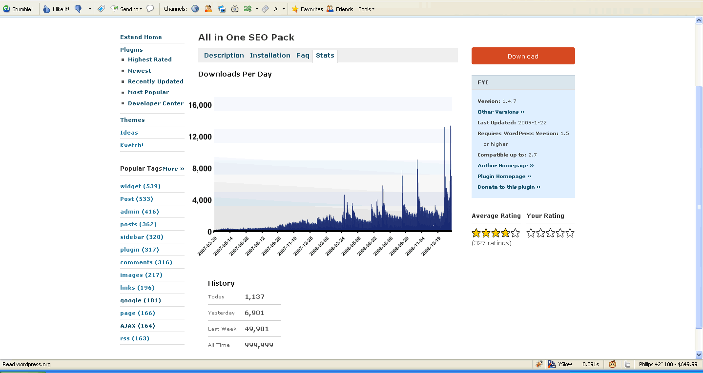 While working on our next release, we noticed that the All-in-One-SEO Pack (http://wordpress.org/extend/plugins/all-in-one-seo-pack/) was fast approaching the 1 Million (1,000,000) download mark on the WordPress plugin directory.